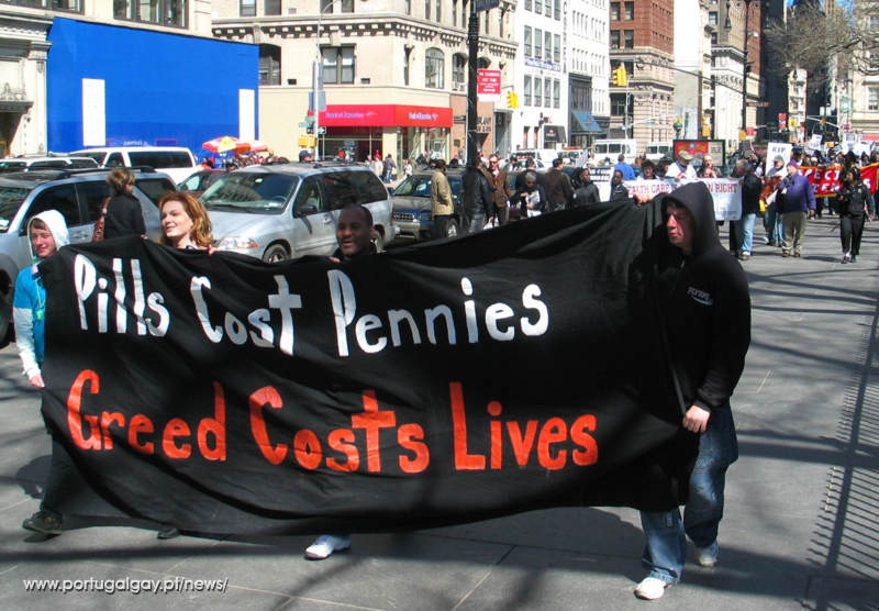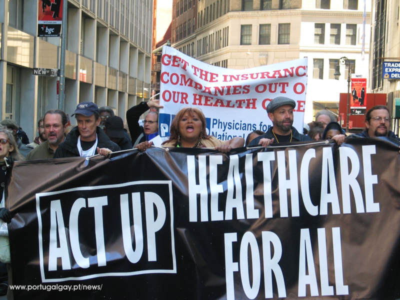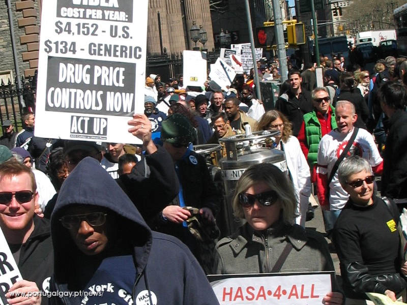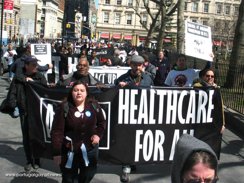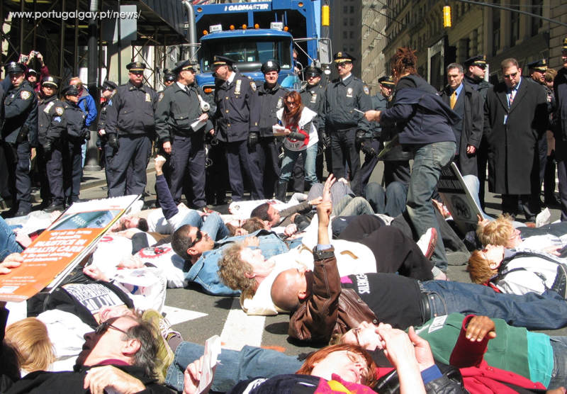 Quinhentas pessoas marcharam e 27 foram detidas na celebração do 20º aniversário da ACT UP realizado numa demonstração no dia 29 de Março em que se pedia um sistema de apoio à saúde uniforme e um controlo do preço dos medicamentos.
