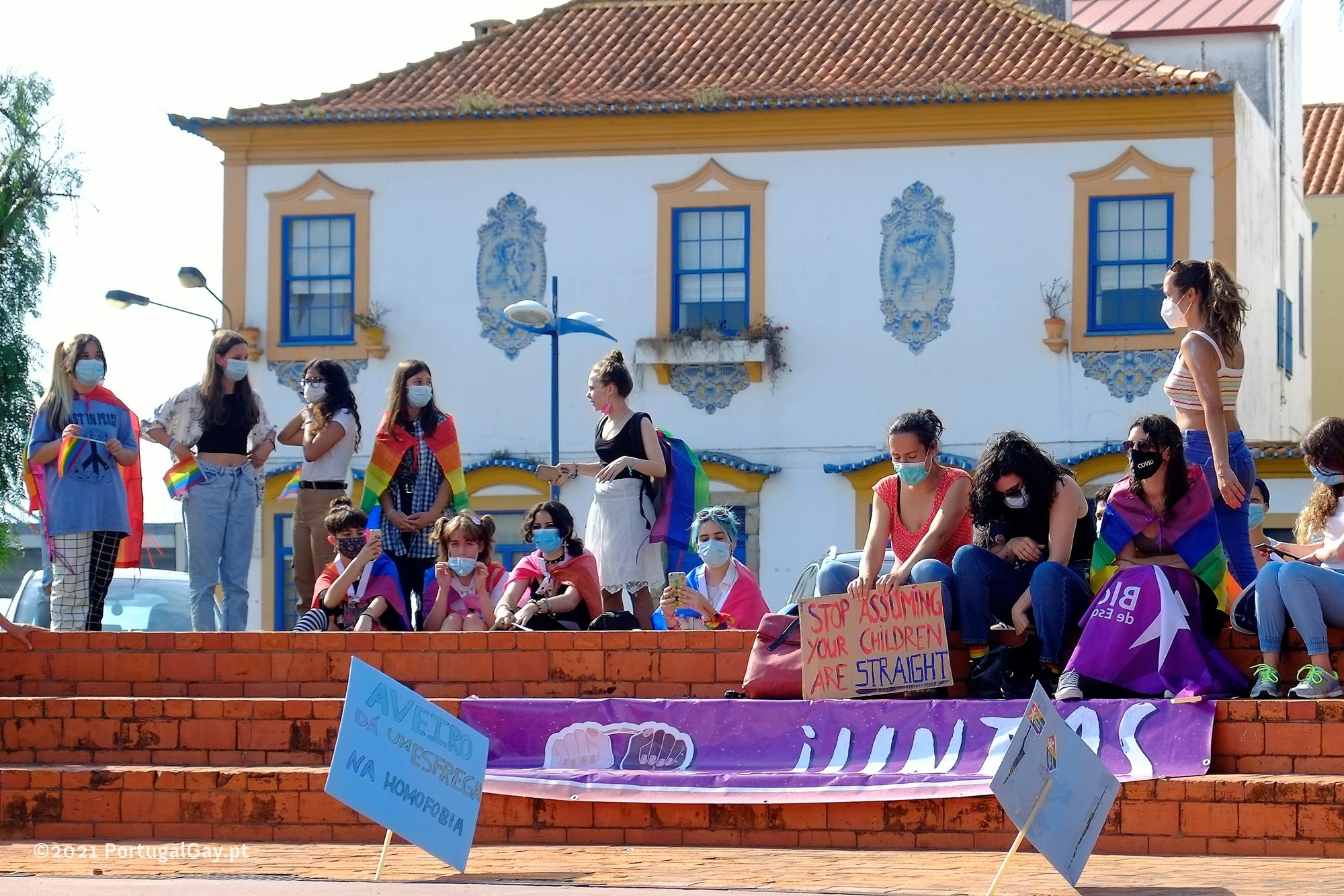 Deixamos aqui a lista das entidades presentes e que usaram da palavra, foram elas: Juntas - movimento feminista de Aveiro - Amplos - Queer Tropical – COMOP; Comissão organizadora da Marcha do Porto - Clube safo – PATH; Plataforma Anti Transfobia e Homofobia Coimbra - LGBTI Leiria - Estudantes internacionais - Núcleo antifascista de Aveiro, ainda presentes algumas representações partidárias, a saber o BE – JS e o PCP e a sua representação juvenil a JCP e também o Volt Portugal.