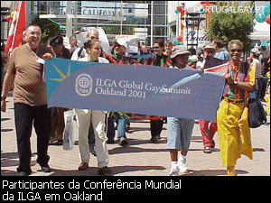 Cerca de 100 representantes de associações GLBT de 40 países dirigiram-se para Oakland de 27 de Agosto a 2 de Setembro na 21ª Conferência Mundial da International Lesbian and Gay Association (ILGA). Estiveram presentes representantes da Argentina, Austrália, Chile, China, Costa Rica, Estónia, Equador, Guatemala, Índia, Jamaica, Líbano, Malásia, Máxico, Nepal, Nova Zelândia, Paquistão, Paraguai, Peru, Roménia, Rússia, Filipinas, Polónia, Eslovaquia, África do Sul, Sri Lanka, Venezuela e Zimbabué -- assim como de diversos países da Europa Ocidental, Canadá e dos EUA.