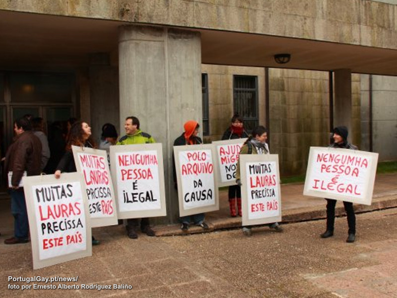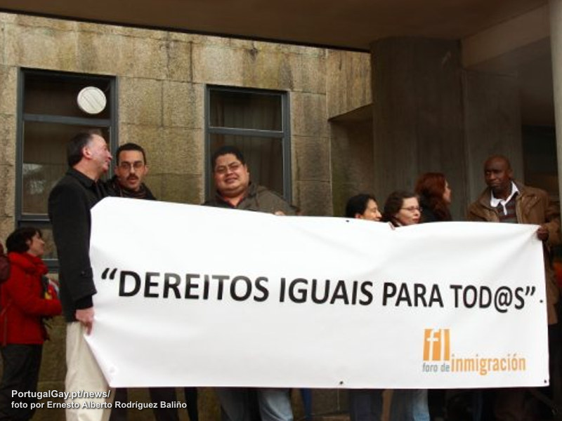 A acção de protesto foi convocada pelo Foro Galego da Inmigración e contou com a presença de diversas outras ONGs. Laura Bugallo é acusada de ter falsificado documentos para regularizar a situação de quatro imigrantes, e a acção foi marcada para hoje para coincidir com o testemunho de Laura Bugallo e com a entrega de documentação de apoio por parte de colectivos quer da Galiza, quer de outros países.