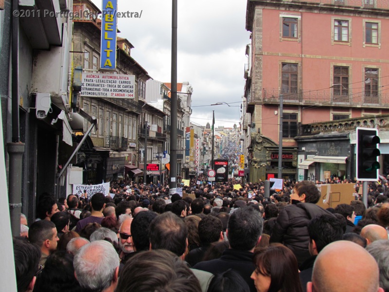 Reformados, desempregados, recibos verdes, e até aqueles que não estão "á rasca" juntaram-se à marcha que teve inicio na Batalha, seguindo por Stª Catarina até a Rua Fernandes Tomás, desceu Sá da Bandeira até D. João I, seguindo aí para a Avenida dos Aliados, numa concentração que há muito não se via na cidade.