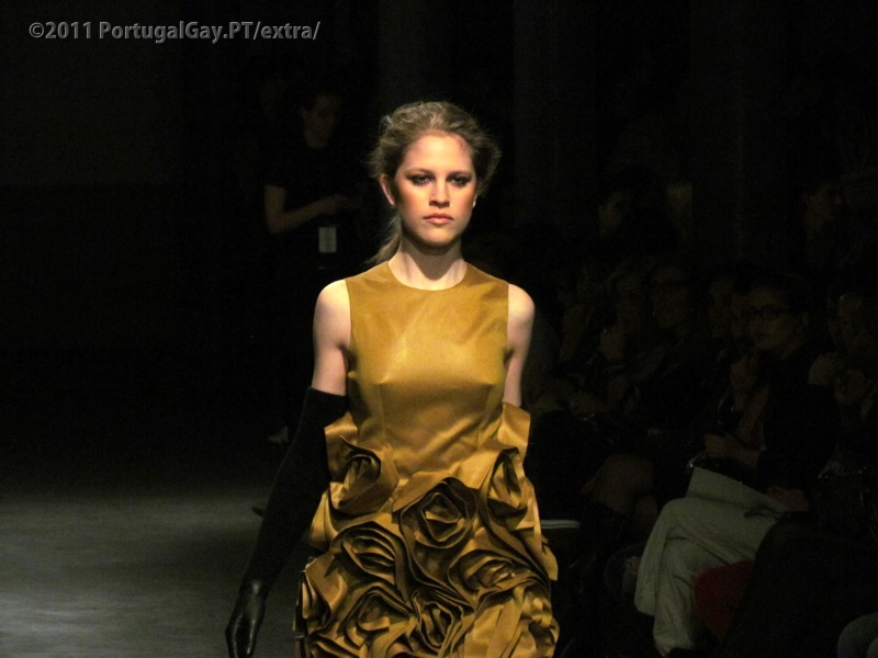 Terminamos o primeiro dia desta edição com Anabela Baldaque, que nos trouxe uma colecção com vestidos cuidados, volumes supreendentes e golas de pelo falso. Uma coleção a evocar o sonho e a imaginação.