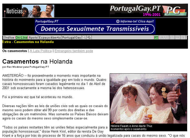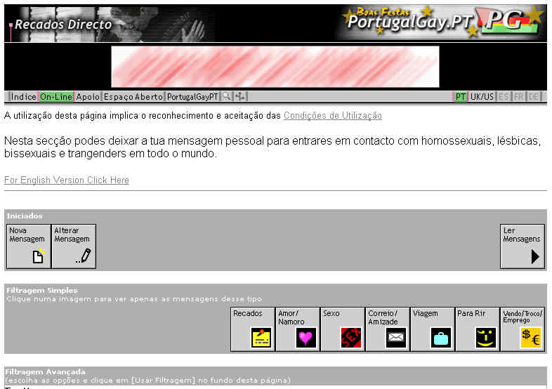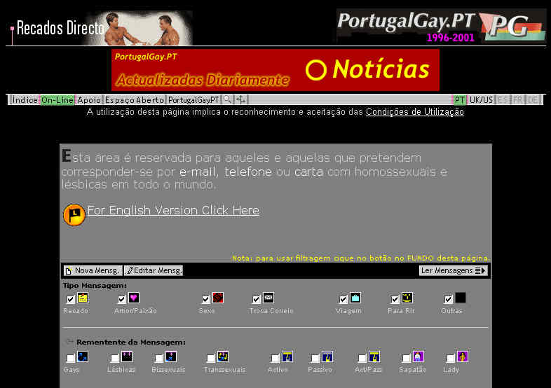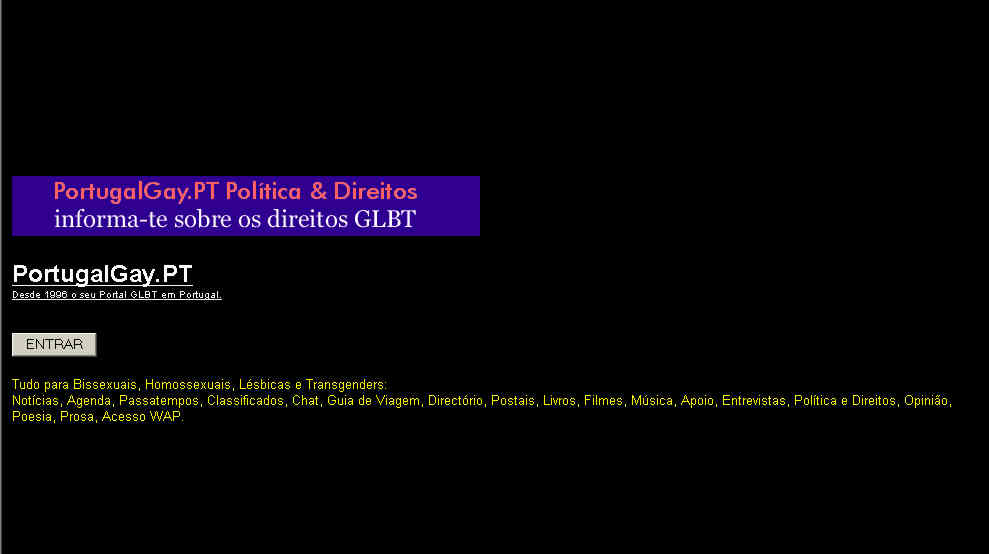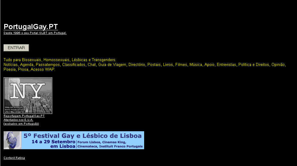 Página de entrada após os atentados de 11 de Setembro e com promoção do Festival de Cinema Gay e Lésbico de Lisboa.