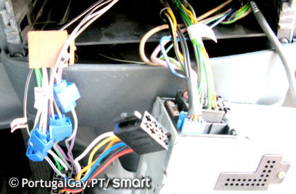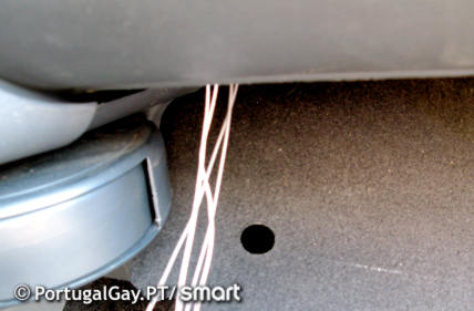 2. Pelo lado de baixo do tablier do passageiro, passar a extensão para o espaço do autorádio.